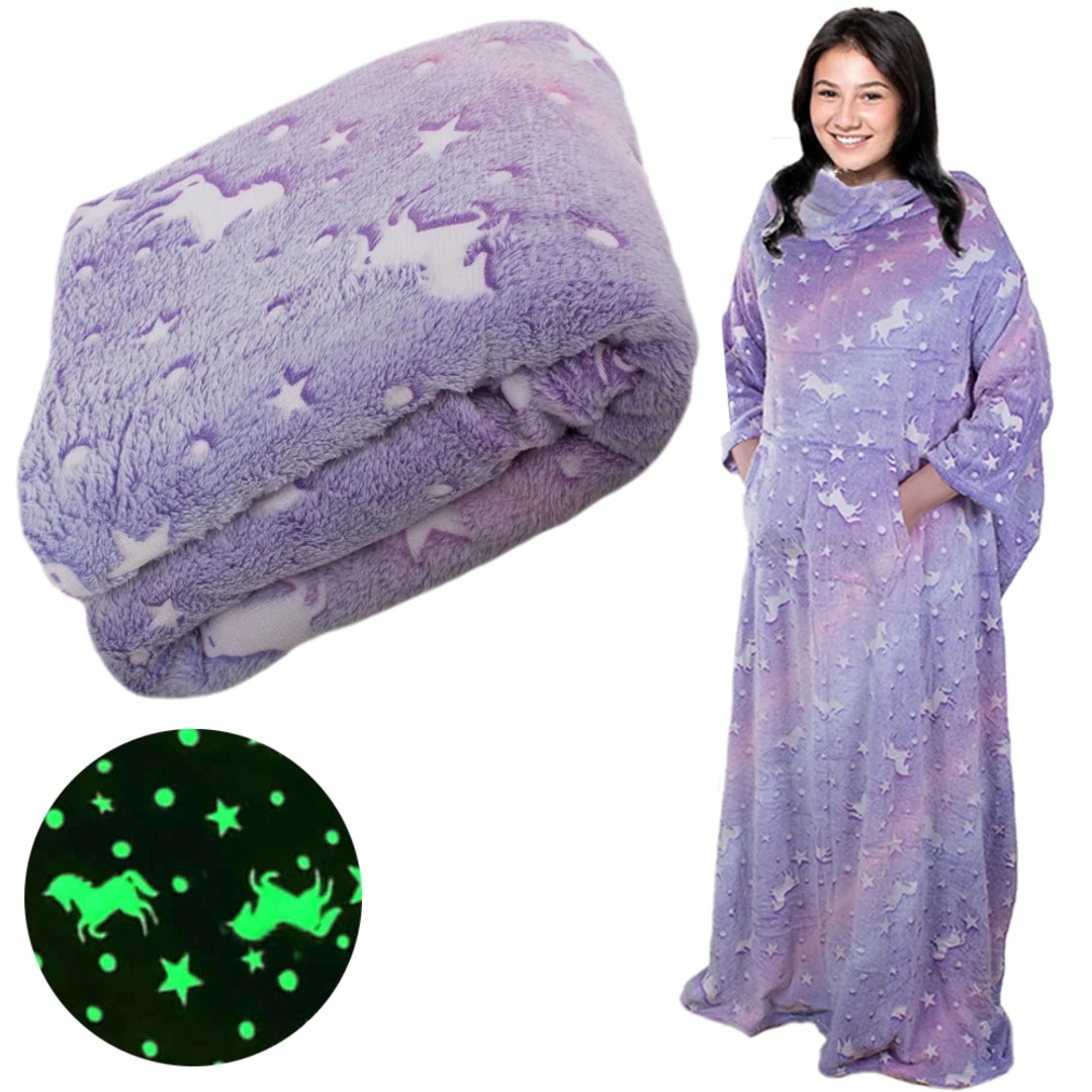 | Lila puha meleg ujjas takarófoszforeszkáló unikornisokkal